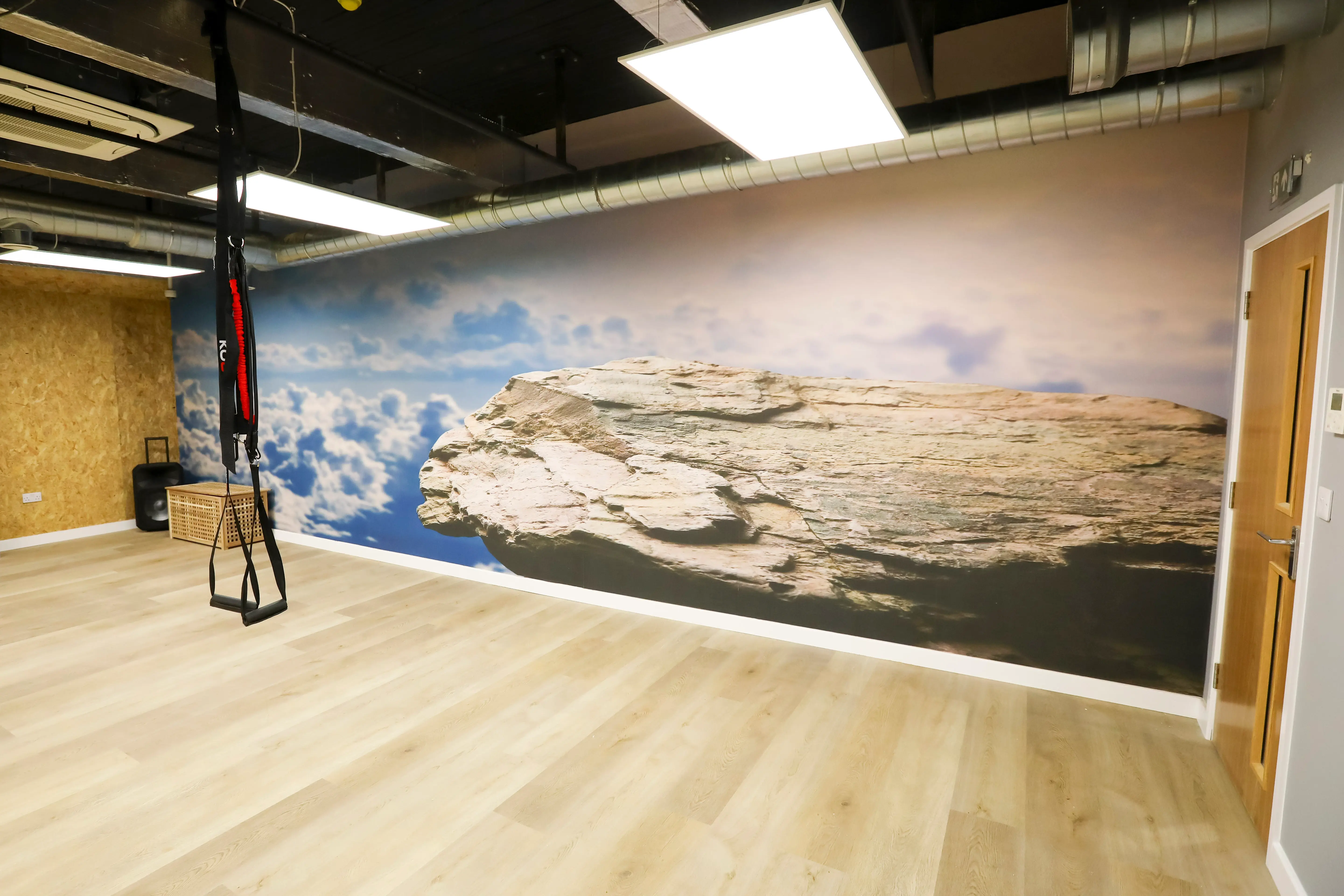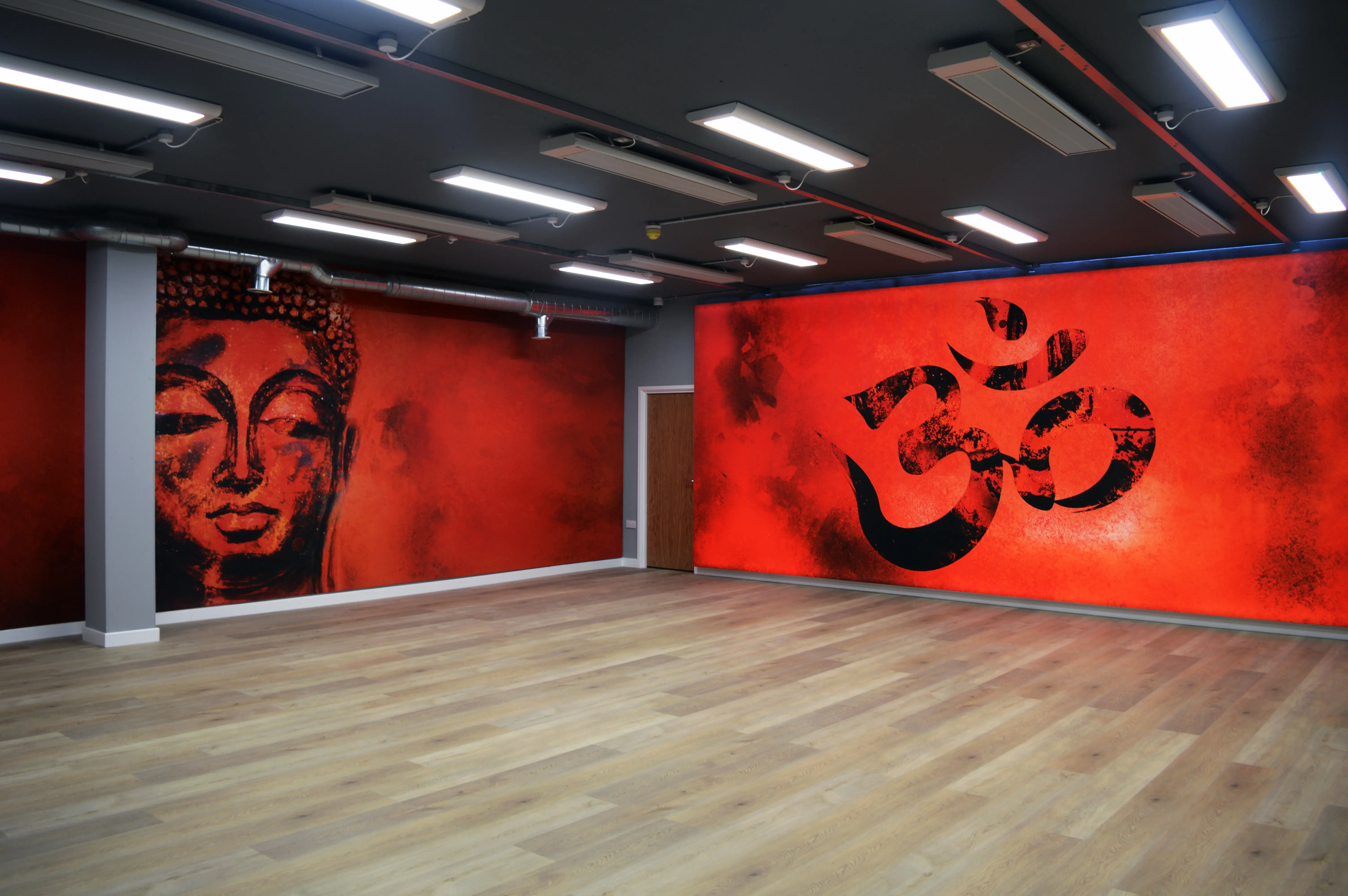 Secondly, we also produced a range of wallpaper, printed foamex, acrylic stand-offs, vinyl and illuminated and non-illuminated tension fabric systems. My specialist team specifically designed the concepts including digitally drawn bespoke pieces of art for the world-class Hot Yoga studio. Our extensive experience allowed my team to share their knowledge throughout the complete process with Ben and Kristina. In addition we also provided them with mood boards, prototypes and example prints for each area of artwork.