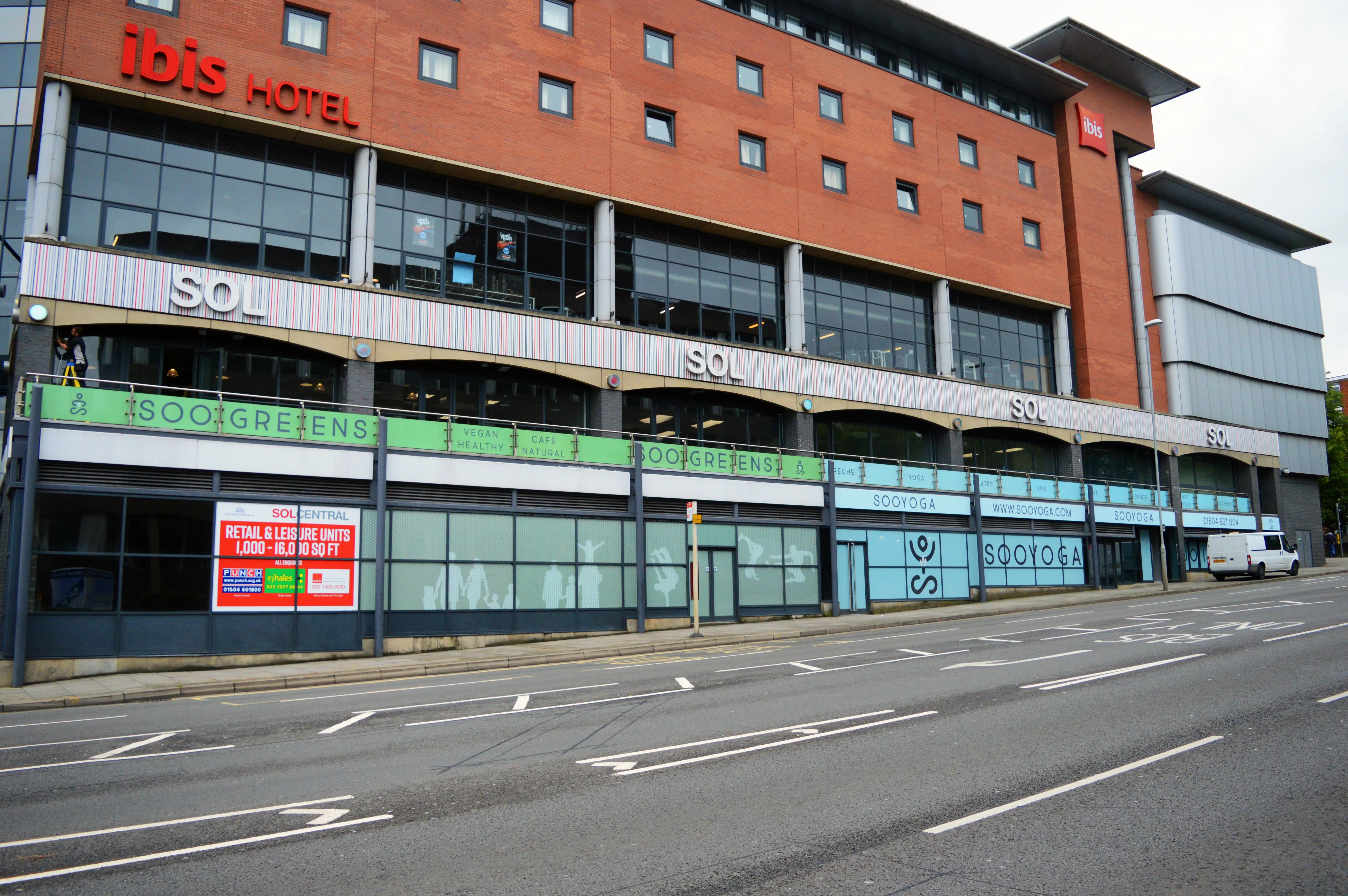 Firstly, we designed, produced and installed was the exterior signage. We used a combination of contravision, banner and vinyl to create a welcoming look for passers-by. In addition, using the brand’s colours, we designed signage to show both Soo Yoga and Soo Greens and used buzzwords to show what they offer i.e. Hot Yoga, Spin, Pilates and Healthy, Fresh and Vegan respectively. As a result, it was bright, vibrant and energetic.
